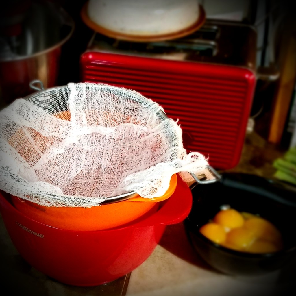 2. The cheesecloth is not necessary, but I find it helps catch the smaller bits of egg.