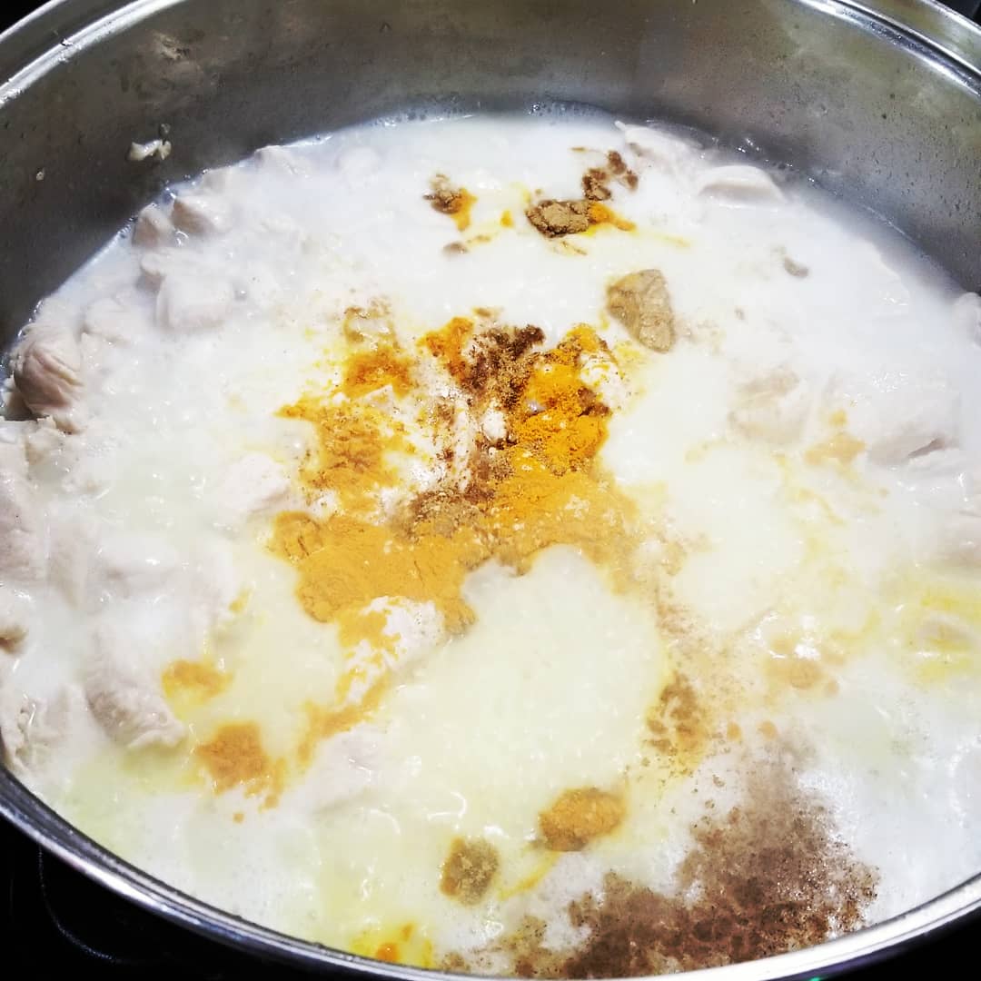 - Cook chicken a little in the coconut oil, does not need to fully cook at this stage.