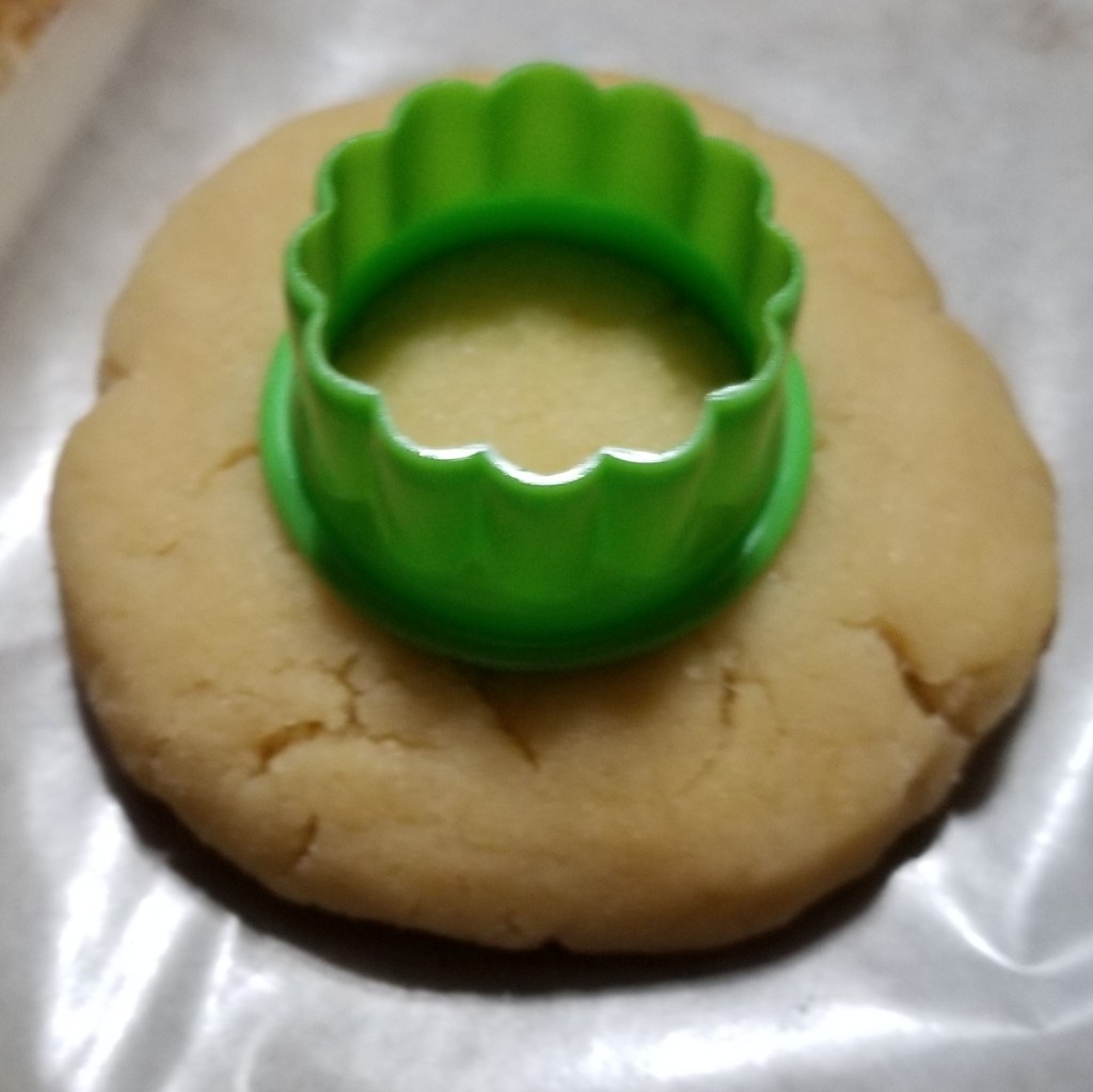 - Cut donuts out with ring cutters, either a donut cutter, or a ring about 2 1/2 inches and another for the inside ring at about 1 1/4 inches. Each cut should yield one donut and one donut hole.